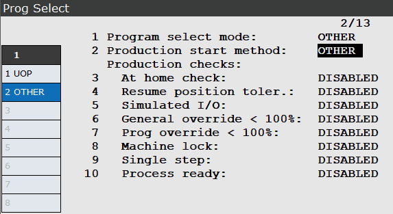 Navigate on the teach pendant to: MENU → SETUP → Prog Select